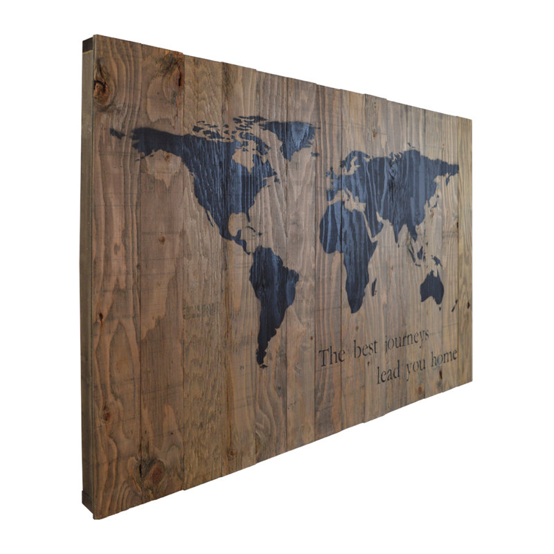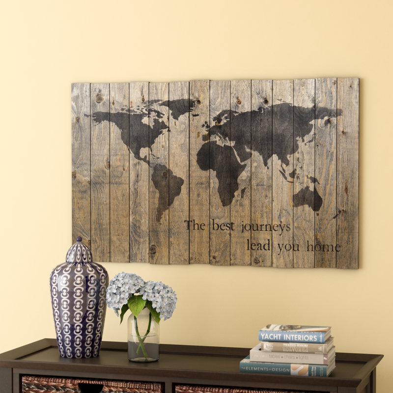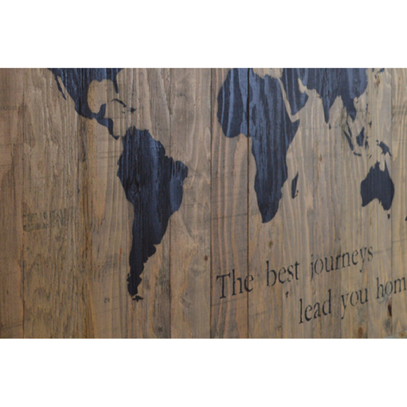 Display what is important to you with this stylish and inspirational wall decor. Lovely addition to any aesthetic from coastal to classic, it showcases a world map and a typographic accent reading “The best journeys lead you home” in a dark serif font. Made in Canada, this sign is crafted from real wood and finished in a rustic, distressed finish to give it a touch of antiqued, old-world charm.
