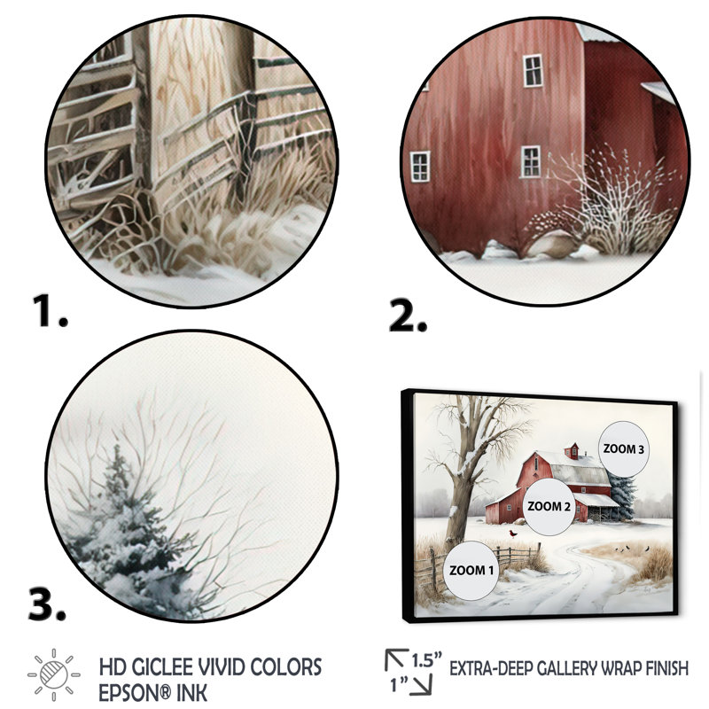 This beautiful “Calm Red Barn In Winter III” Wrapped / Framed Canvas Art is printed using the highest quality fade-resistant ink on canvas. This Traditional Wall art is printed on premium quality cott…. Read More.
